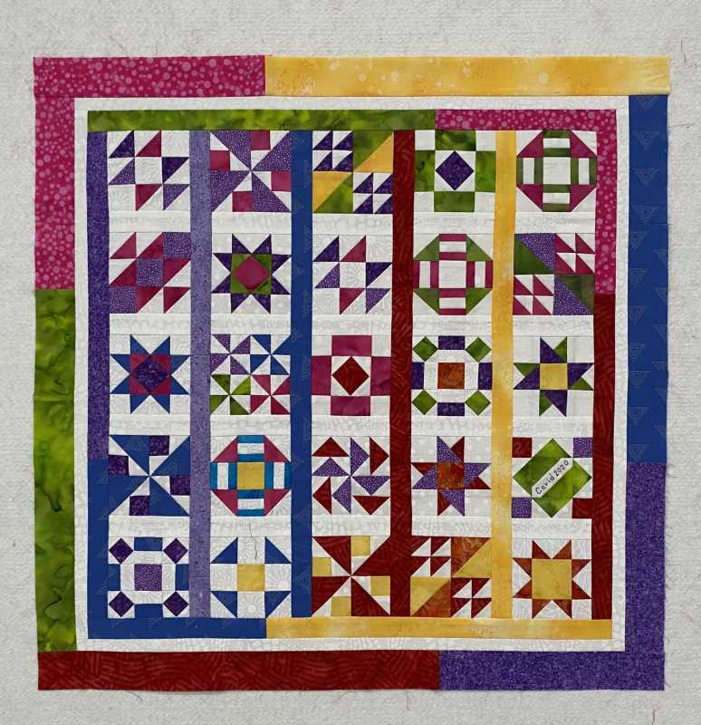 So, I went a totally different way. My quilt measures 24" square. It was challenging to make but a fun way to spend the hot summer in southern Florida.