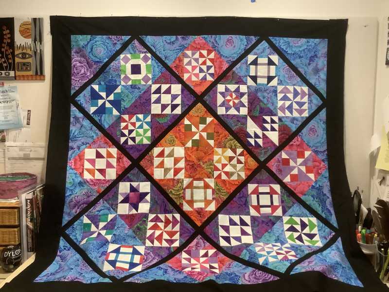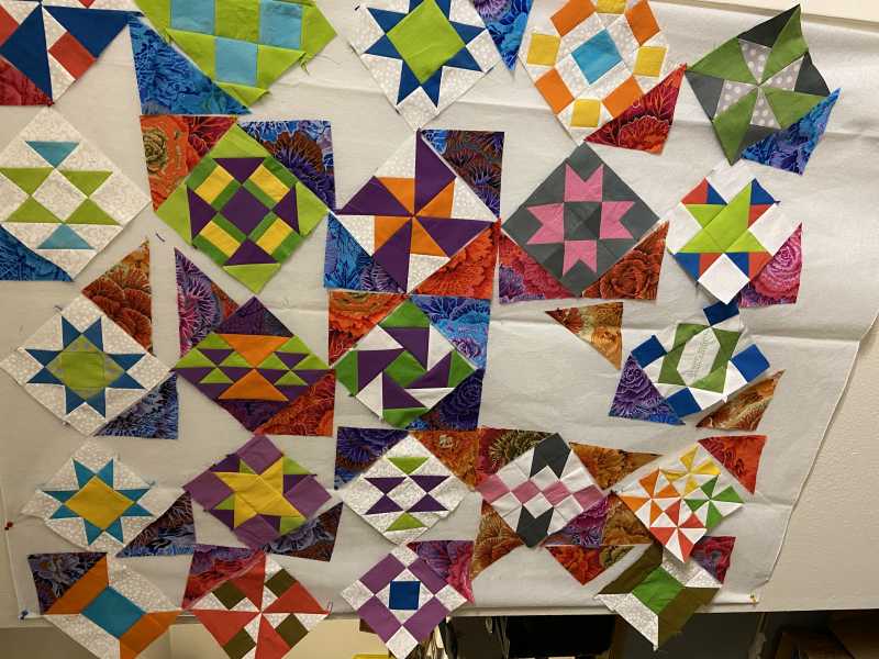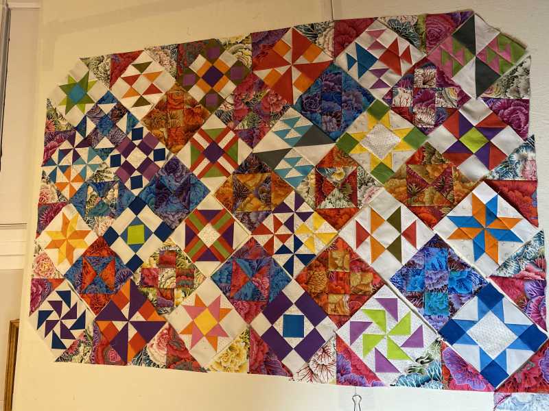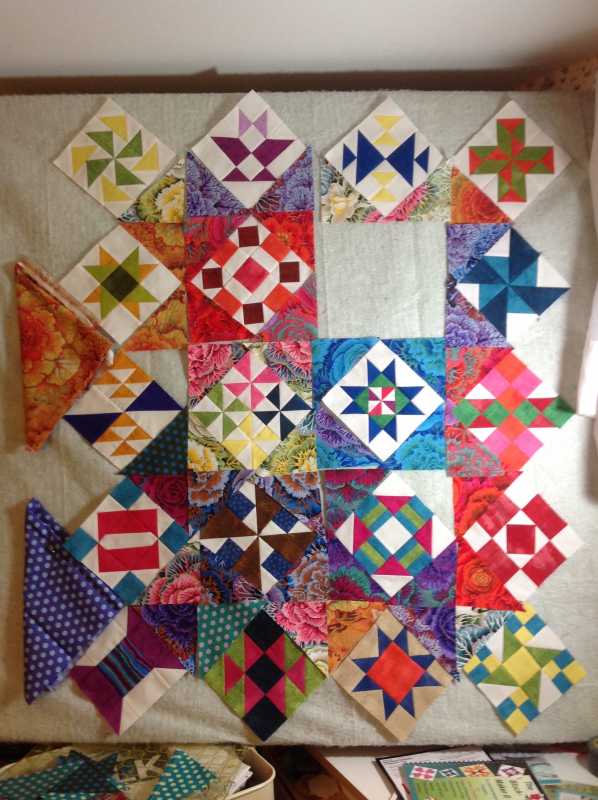 the bias on the outside of the pieced block when you add triangles to the corners of the on point pieced block.