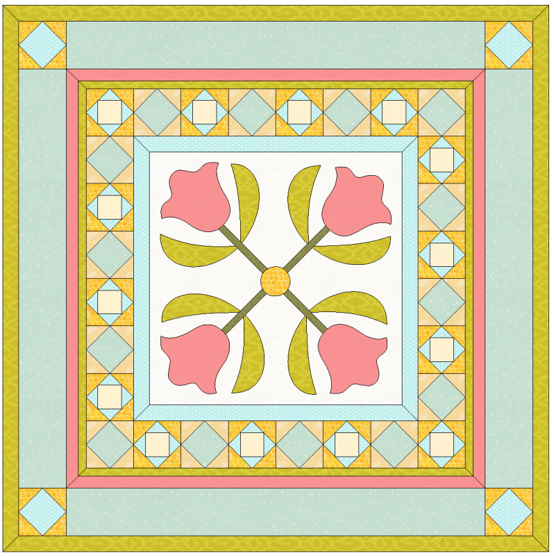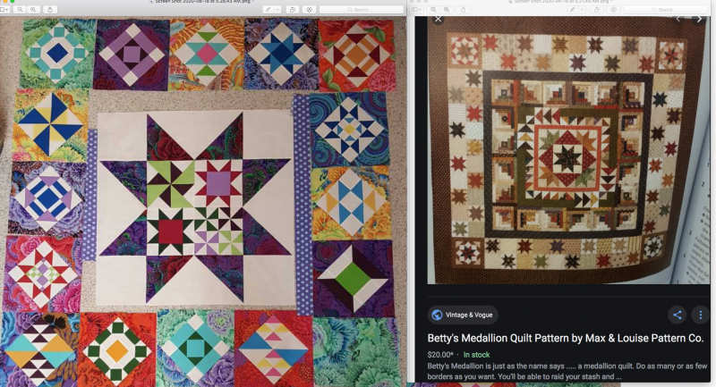dot fabric, then block border around center square, then you can keep building borders either pieced or just Kaffe fabrics to make it bigger. This other screenshot I saw on line