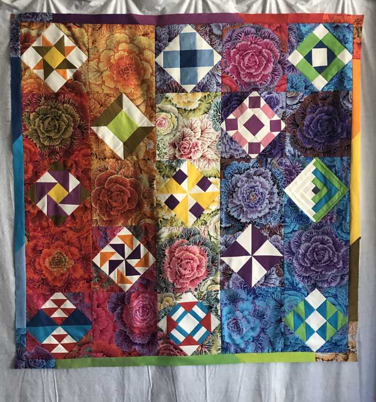 Not sure how I will create my border. I'm excited to try straight line quilting. This has been the most fun project and I think it's kept me relatively sane in a very insane world, maybe. LOL!!!! Thank you, Alex