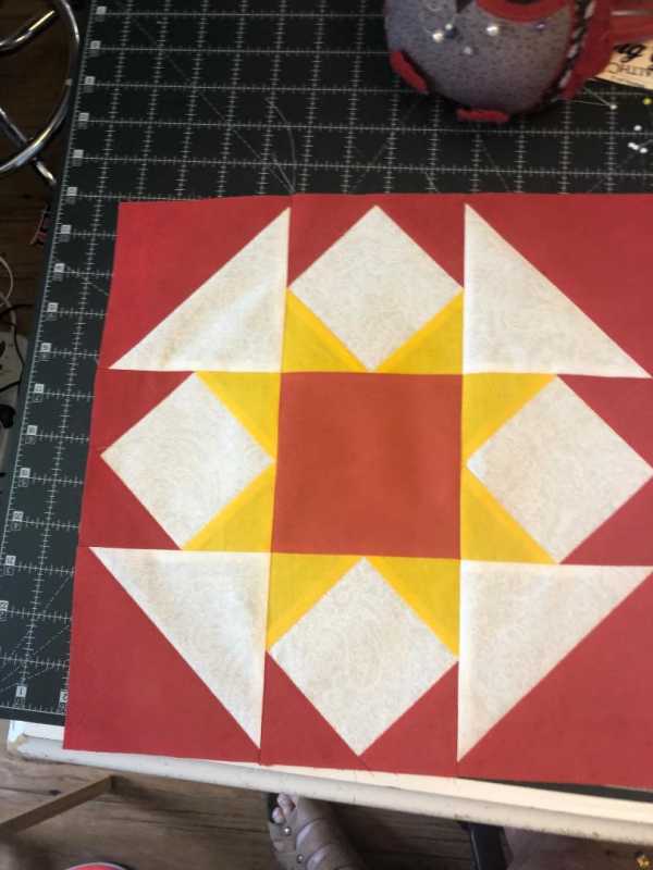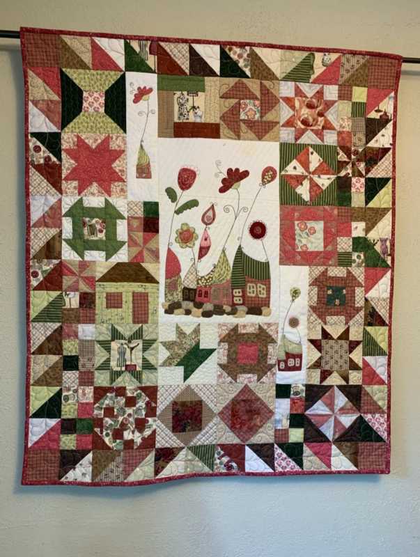 I had fun making the quilt. I’m titling it “Safe at Home”. I found the center pattern on pinterest entitled flowervillage by Annabes. I’m a new subscriber and enjoy watching the new programs and your 1/2 hour talks/instruction. I have also enjoyed watching past shows. I started at season 1 and am now up to season 7—fun way to sew watching your programs. What great information and a way to add to my wish list of what I want to try. Definitely a great bargain for all that I am learning!