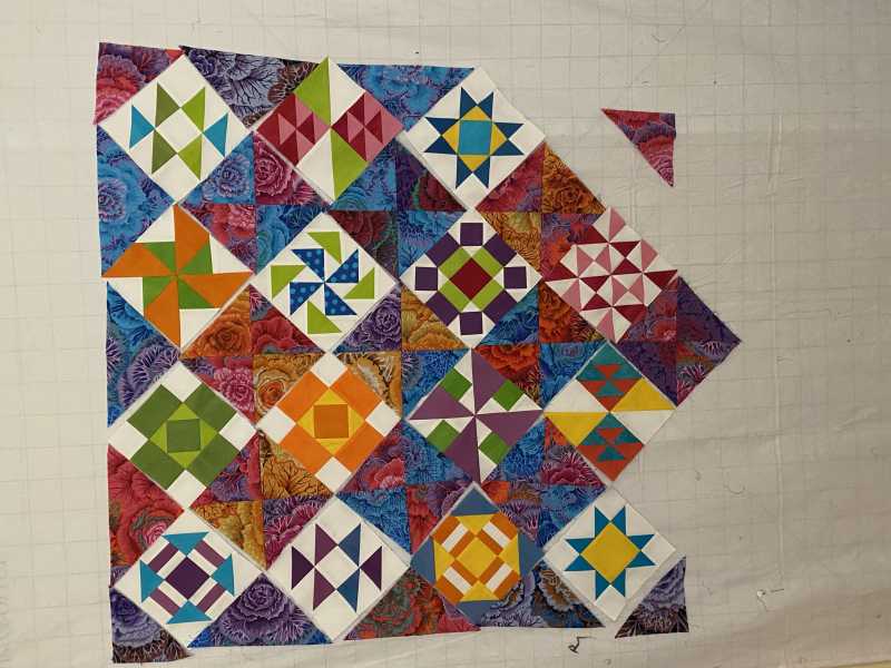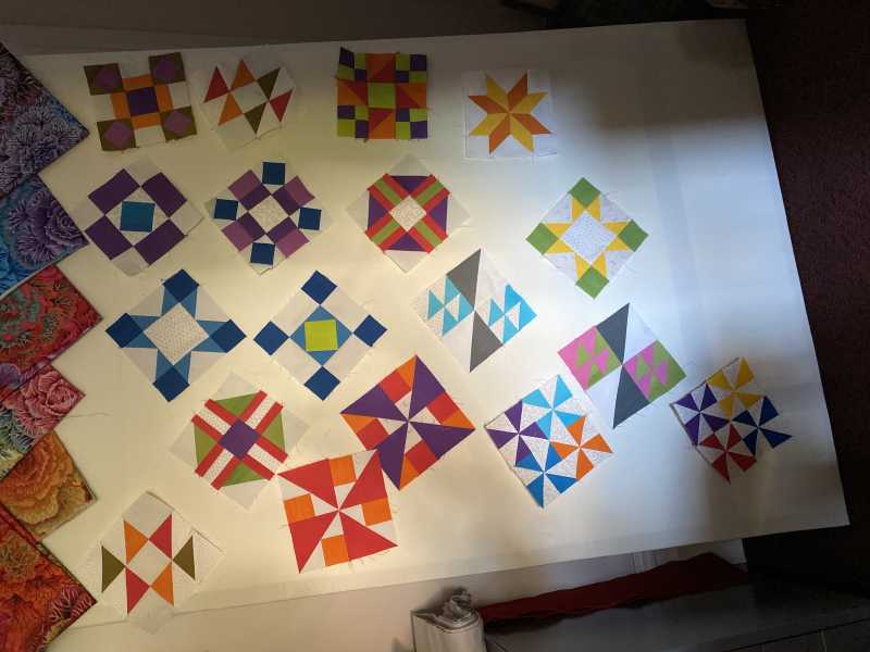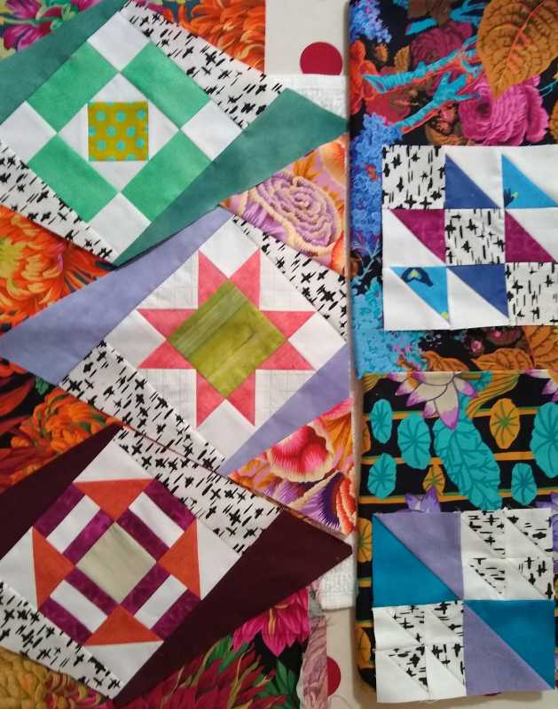 I'm excited about this project, It's so out of my wheel house! I think it's like eating peanuts, you can't stop. I haven't put anything together, I want to have all the blocks completed and then arrange them. I took Alex's advice with the Kaffte blocks. I've decided to do them in 1/4 square triangles instead of just plain square blocks, This has been an amazing learning experience for me. Another bit of great advice from Alex, I watched Sally Collins video on precision piecing. There are things in her video I never knew, it is making a huge difference in the way things are going together (not always), And, this is free!!!! Thank you, thank you, thank you!!!