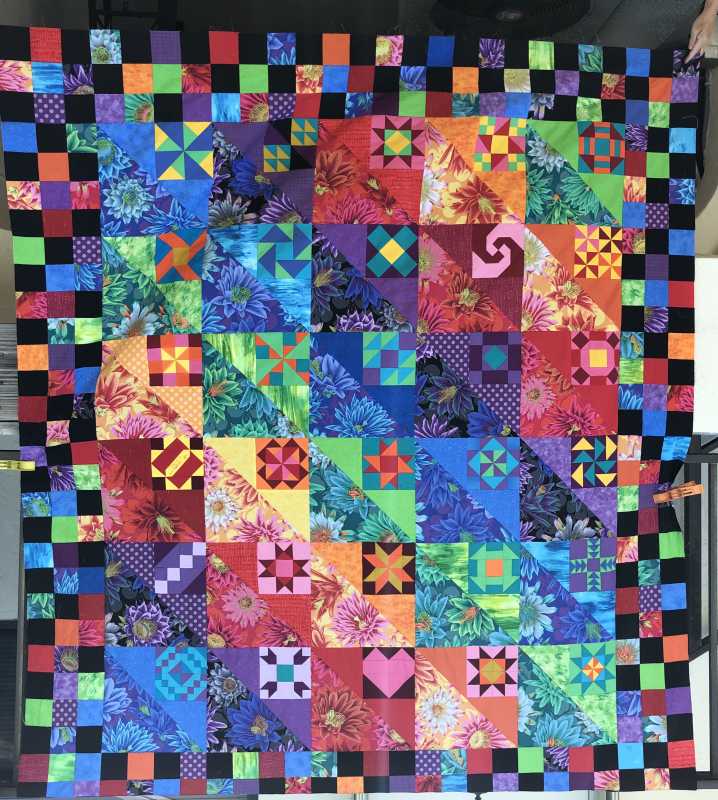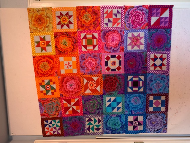 It took me a few days to do the embroidery and applique, but it's done now. Not sure I'm loving the bottom part of the quilt, but I do love the rest of it. Maybe I quit a little too soon? Well, it is what it is, and I did learn a lot... My first ever mitered corners on the borders. A Kaffe stripe I found on line. Now to get it quilted and bound.