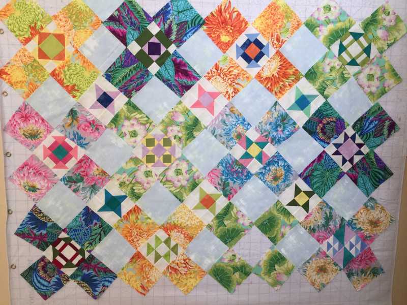 Here's what's happening today...it changes daily and then hourly. I'll definately be replacing a couple blocks that feel out of place. Then, I want to figure out a border that uses more of the Kaffe prints. Alex, this has been an amazing experience! Thank you!