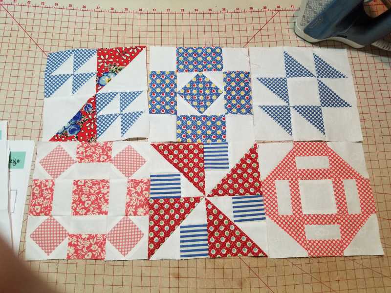 Today I got caught up. I am making two different quilts. One with Kaffe fabrics and another with scraps left over from a different fat quarter bundle. I'm feeling more comfortable with the project now.