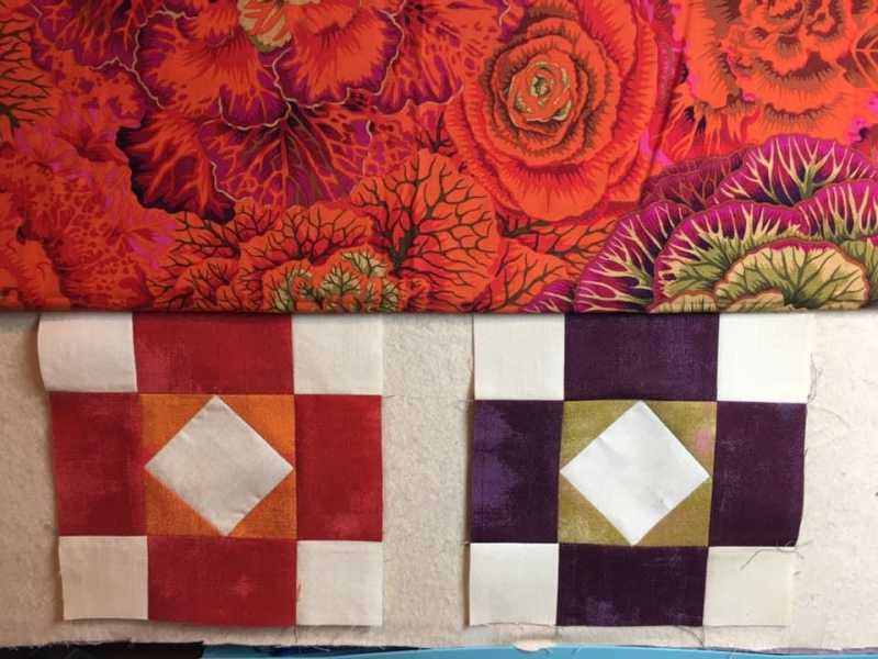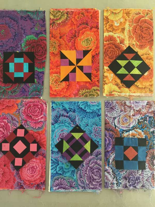 GradyK, I like your black fabric blocks very much. There's enough light in the Kaffe fabrics to act as a "spark" in the mix. I haven't started mine yet so yours give me something to consider!