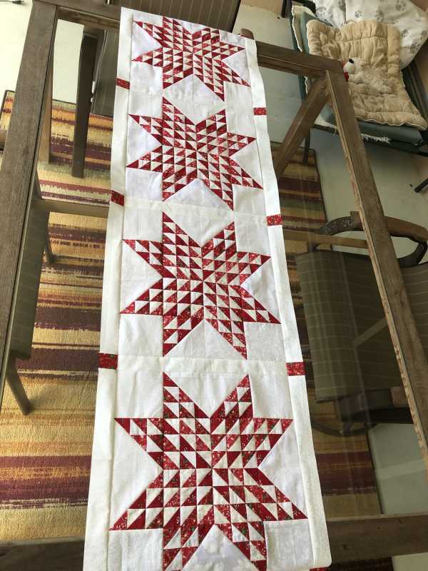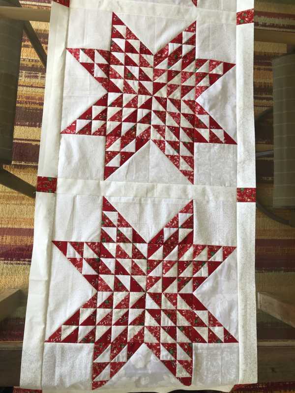 Finished my star blocks and got the, set. I will be adding a small border to the sides and a larger one on the ends. I plan on doing an embroidery on each end, just need to pick one out.