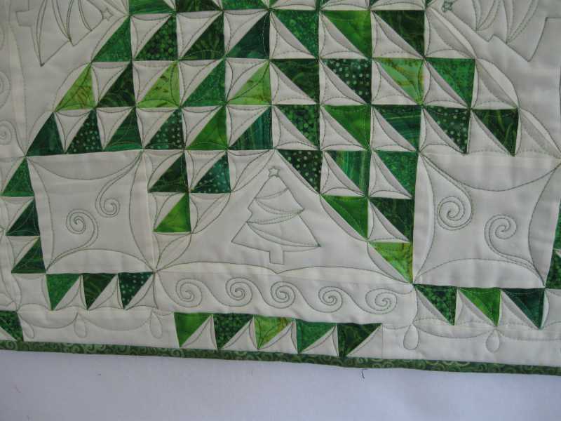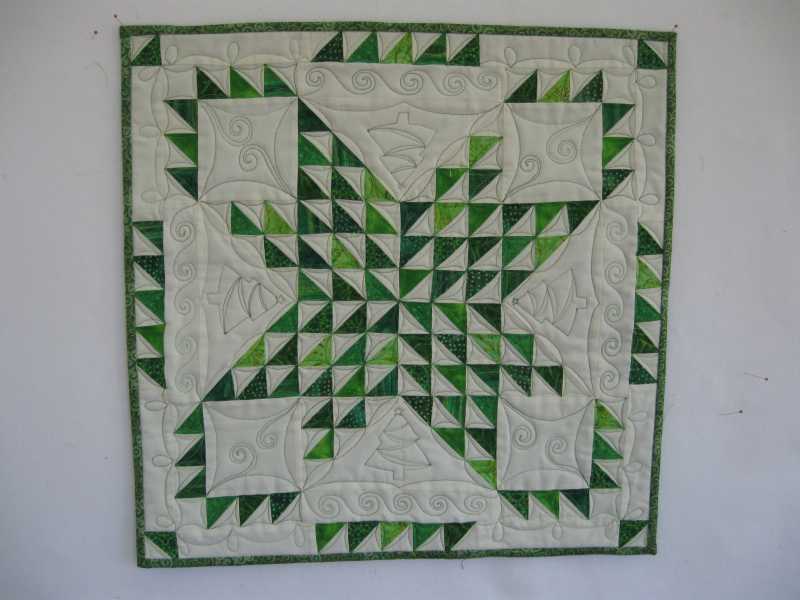 Pribil, I would just do a straight stitch around the edge of all the pieces. Maybe 2.5 or 2.0 length stitch. If you have a knee lift that would be helpful. Each time you need to pivot, put the needle down in the fabric, lift the feed dogs and and pivot, then continue stitching. It won't be easy. You can do just straight lines for background stitches. Draw lines with a