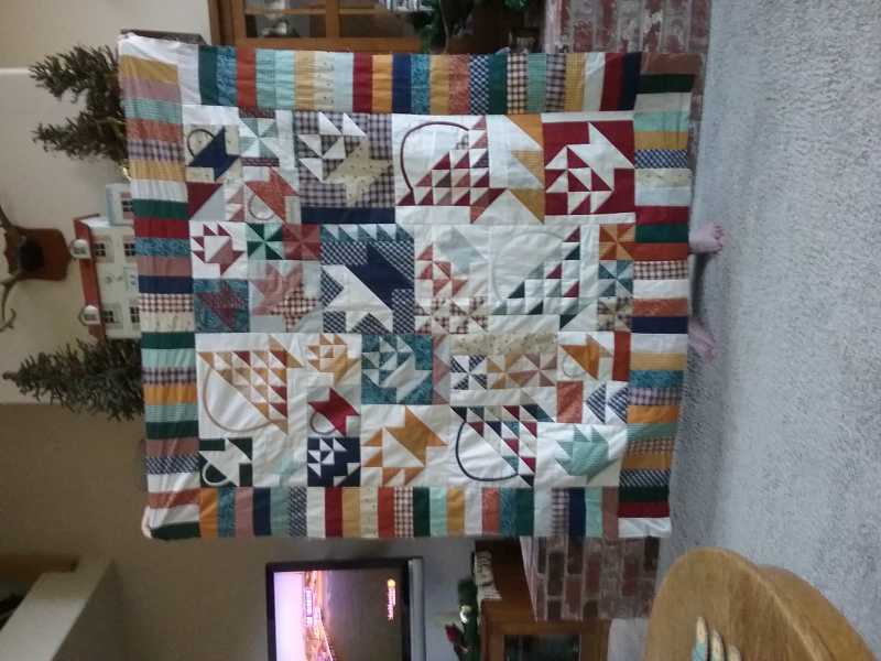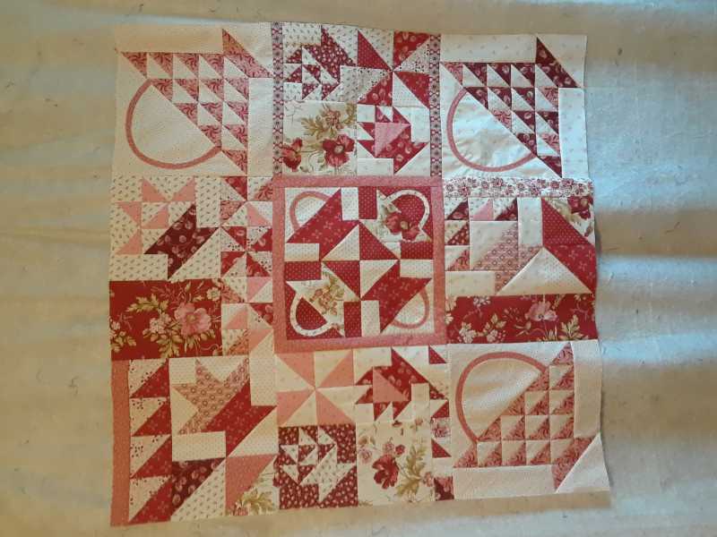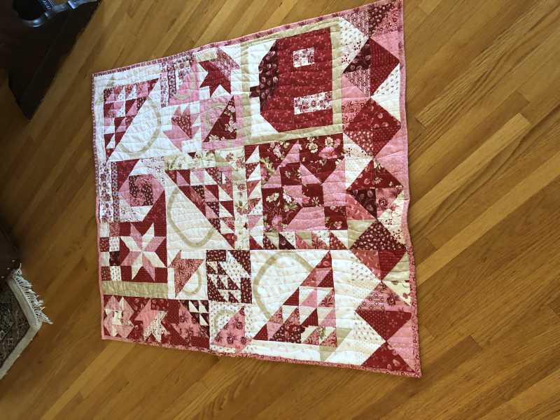 I included the negative space in the upper right and lower left to add a somewhat modern element to this otherwise very traditional (for me!) quilt. The top is 86” x 92”; everything was cut on my Accuquilt GO die cutter and my blocks are 18”, 12”, 9”, 6”, and 4.5”