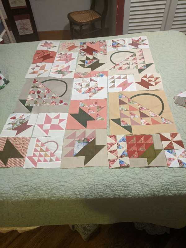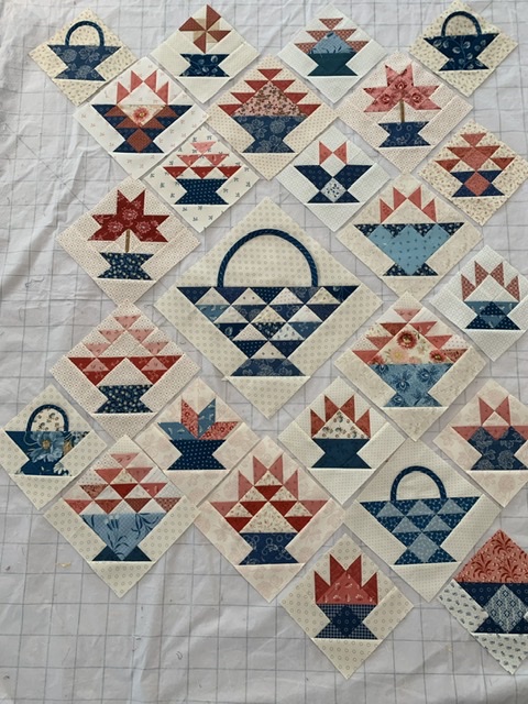 I took on the challenge of trying to make each block different (although there are multiples of some I really liked). Am having fun trying new block designs. Thinking of appliquéing some flowers in the center basket. (hope it’s ok that I didn’t follow all the rules)....Lynne