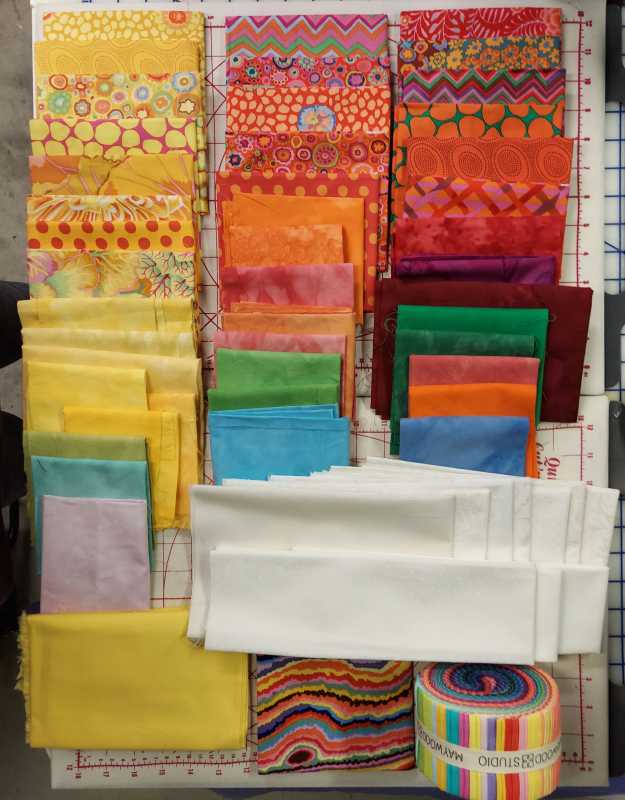 Alex used a bundle of 26 Fat Quarters plus a few more light background fabrics to make her quilt.