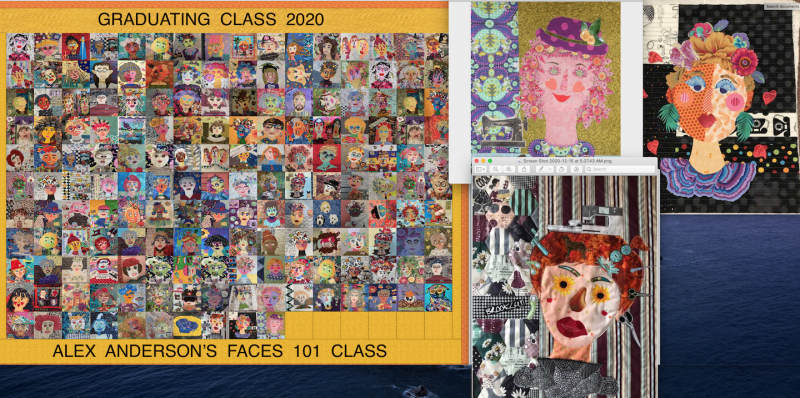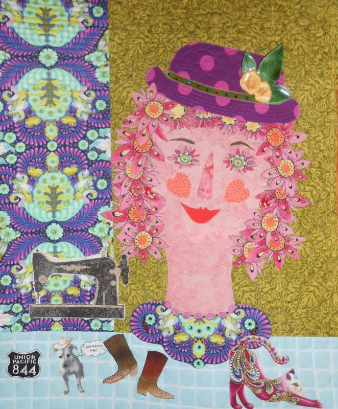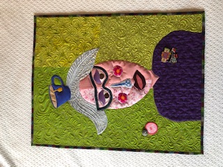 I have tweaked my Face. I changed the background fabric and hat. I have added the boots for my brother who left us in August. The hat represents my dad, the sewing machine is for my love of sewing. The flower pin was my mom's. The UP 844 badge is from my working days at the Calif. State Railroad Museum. The cat and dog are for my pets that I no longer have. The earrings are from my favorite baseball team. I plan to tweak some more after Christmas. Oh, yes, the flowered hair is for the red hair I had before turning gray! I have had a lot of fun doing this and thank Alex for spending her time to teach us something new.