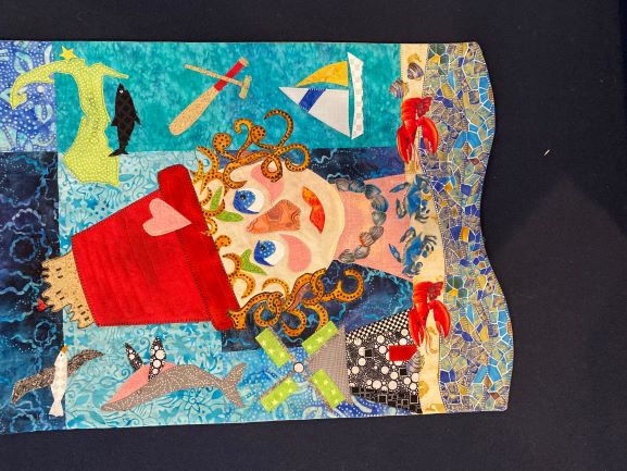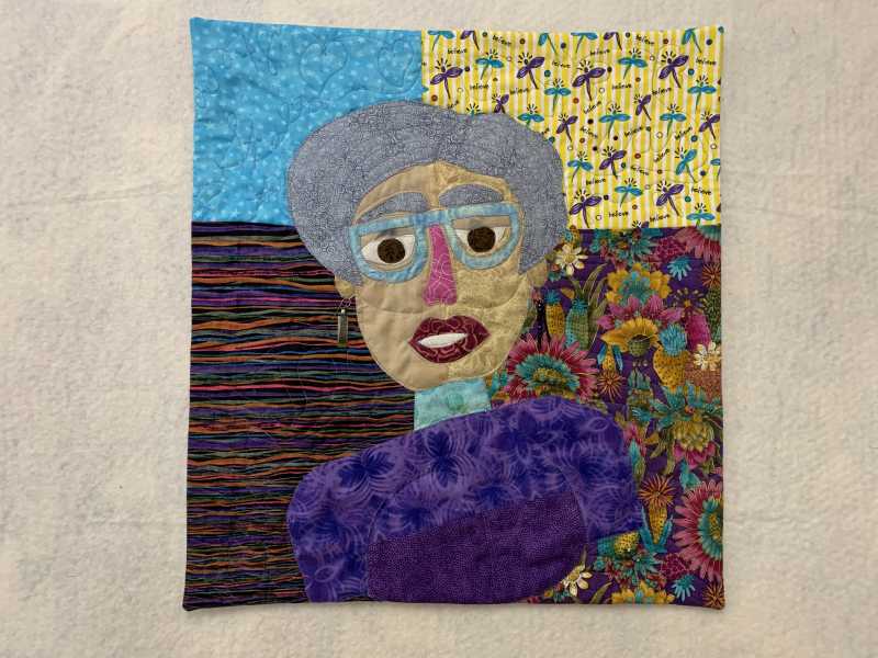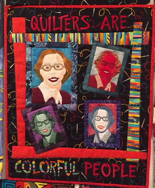 I quilted my favorite things in the background, grandkids Stella, which means Star, and Sam, who is as busy as a dragonfly. TQS, Alex, Ricky, my guild, HQH, and especially my wonderful group of quilter friends, the Sunday Sew and Sews, SSS.