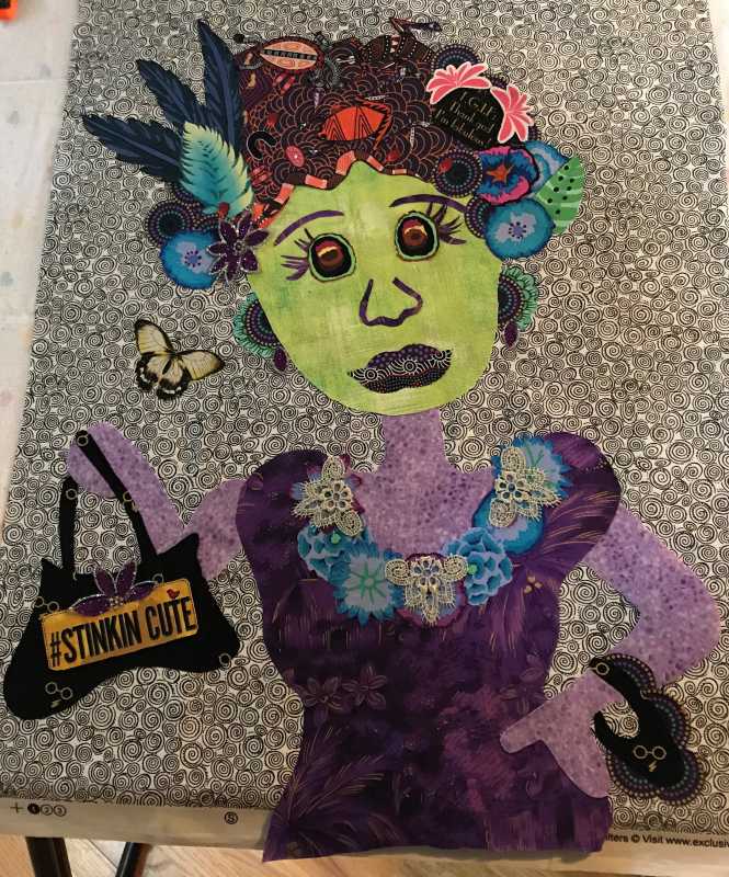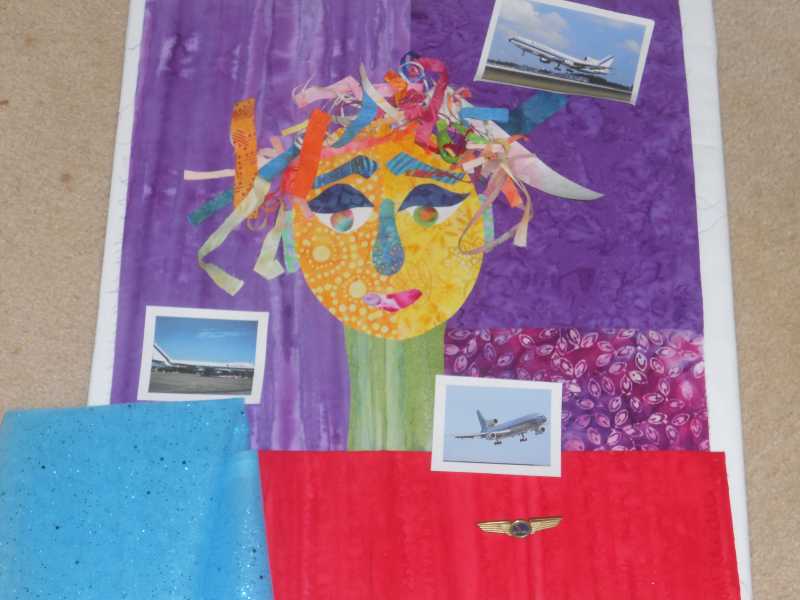 This is "Just Another pretty Face" I have several fabrics that I'm considering for the clothing, trying to decide. I plan on cutting out the airplanes, I Now I'm thinking of a halo just on top of her head. What fun!