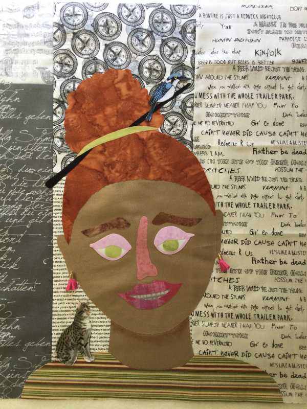 I have finished her totally. She has some "when I grow old, I will wear purple," some RBG lace in her flower collar. Some Harry Potter fabric and some sparkle in flower tulle.