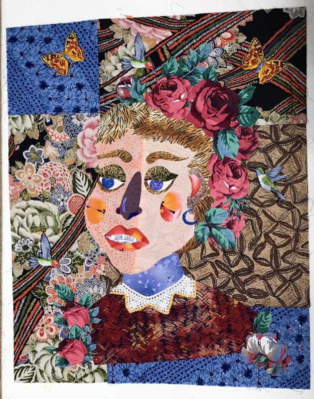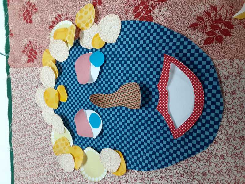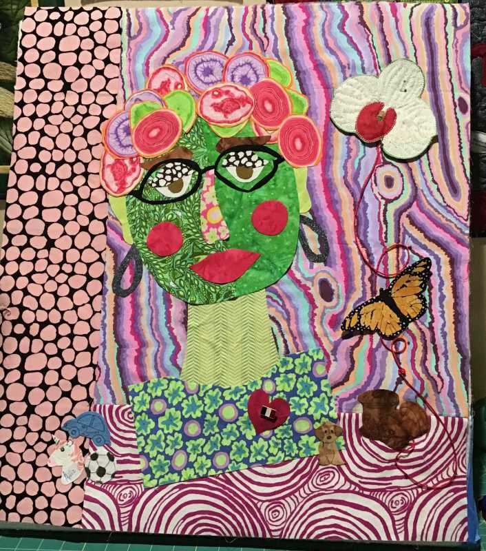 Love this project Alex! Each Item surrounding my face has a symbolic meaning: the car is for my grandson that loves toy cars; the unicorn is for my granddaughter; the soccer ball for my father and son; the spool of threads (incomplete) represent my mother (a seamstress) and my love of thread painting; the orchid (I grow orchids) and the monarch butterfly, as in Mexican culture, represents the souls of my family that have passed. My heart with the Italian pin signifies my birth country and the love I have for it and my first language. The doodle is my dog, my constant companion. This has been lots of fun to do and think about what is important to me. Still need to add some other items. Of course, nothing is yet ironed down or sewn; still thinking about when and how to do this but thank you for this lovely, heart warming project.