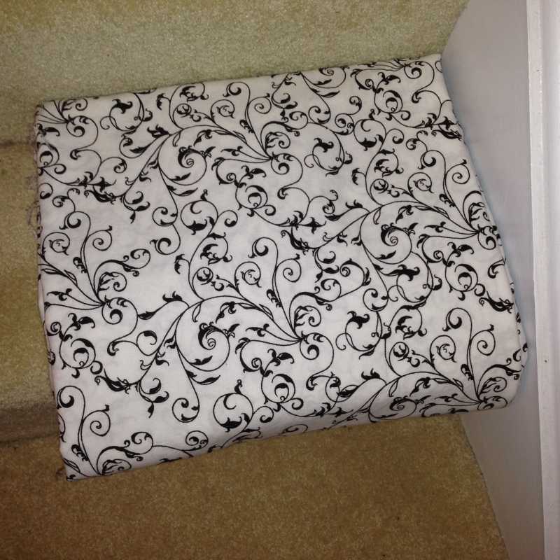 I have my backing fabric, too. She made a point of saying that one of her inspirations was the black and white tile floor, so I choose a black and white background fabric.