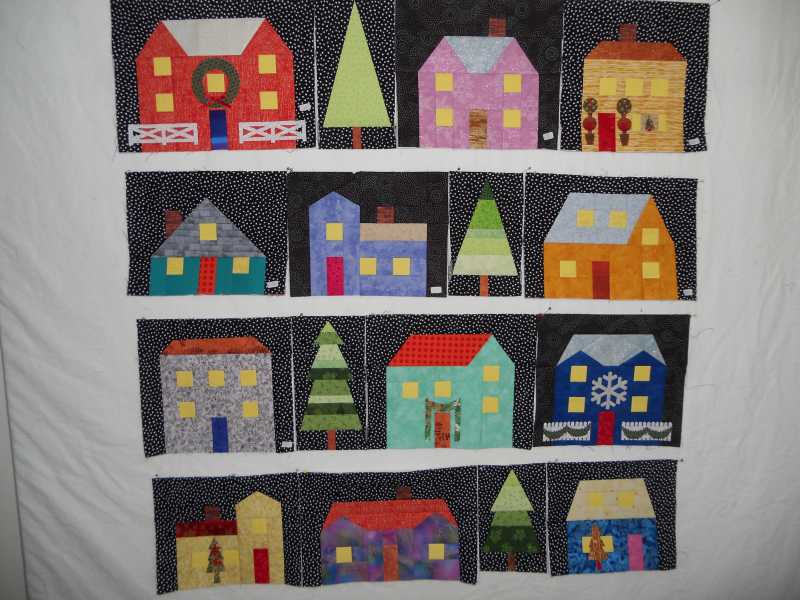 Anne, your houses look so great, I love them! I think that what Nancy suggests is a good idea and it's what I always do. But will you be sashing between the houses and trees? I love them in rows just as they are on your design wall. I too like the stripe but couldn't be certain until I saw both fabrics behind them. Good luck and I hope you show us a photo when you make the decision.