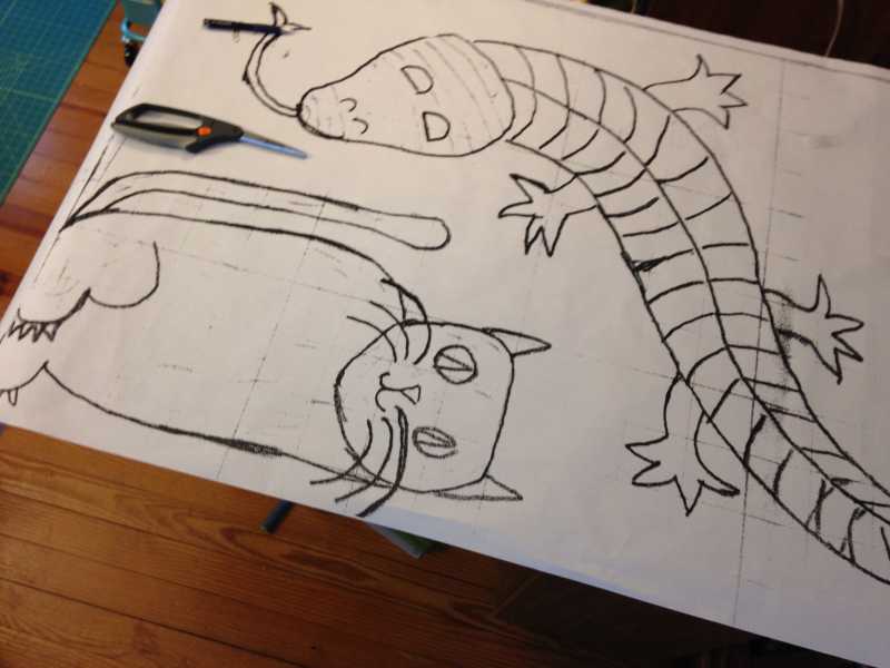 Here is a picture of the master copy of the design for Gabe's quilt. By the way, the alien will be on the back as part of the label.