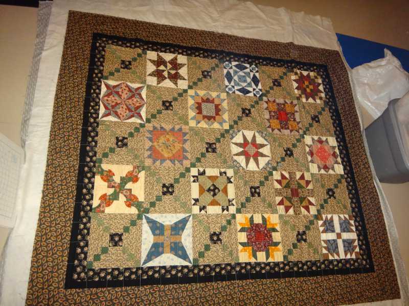 Thanks, Nancy. While I am piecing the stars on my BOM, I laid this quilt out to inspire me on ideas for quilting it. A LQS in New Braunfels, TX would do $5 quilt clubs. You pay $5 for the first month's block and then if you finish it and bring it back to the next month's session you get the next block free and so on. In this case I think I had to buy the book of patterns also. I think it is "More Bible Blocks." Then of course I had to buy all the fabric for the alternate blocks and borders ... and 3 more blocks so I could make it a double size. I think I finished the top in 2007. Just before moving here I had a friend layer it for me on her long arm. Now all I have to do it quilt it.