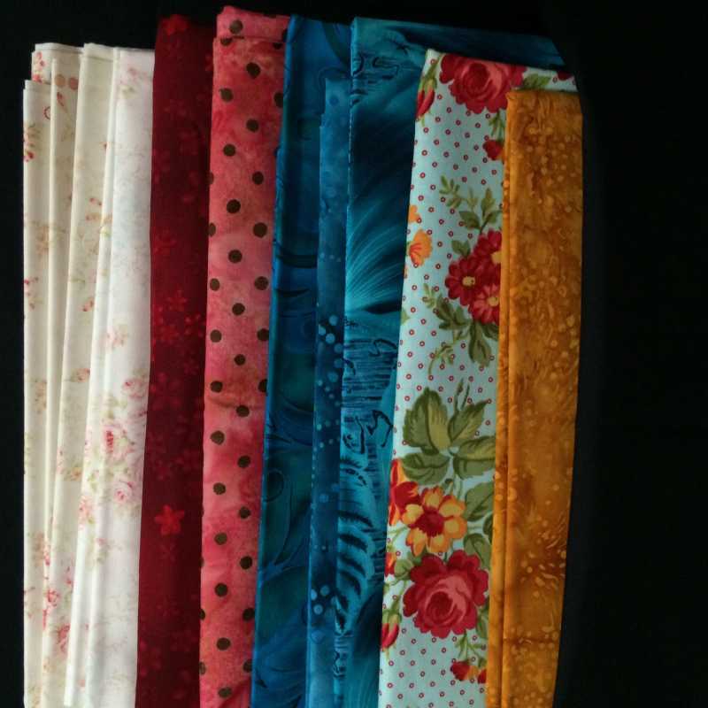 I have chosen my fabrics from my stash. I didn't have enough on some of the colors, so I just tried to make 'very close' choices. I pondered over this for how long now?? Finally, I just decided to just take a favorite piece I wanted to use, and build it from there! I love my colors, so I know I'll enjoy sewing the mystery pieces together.