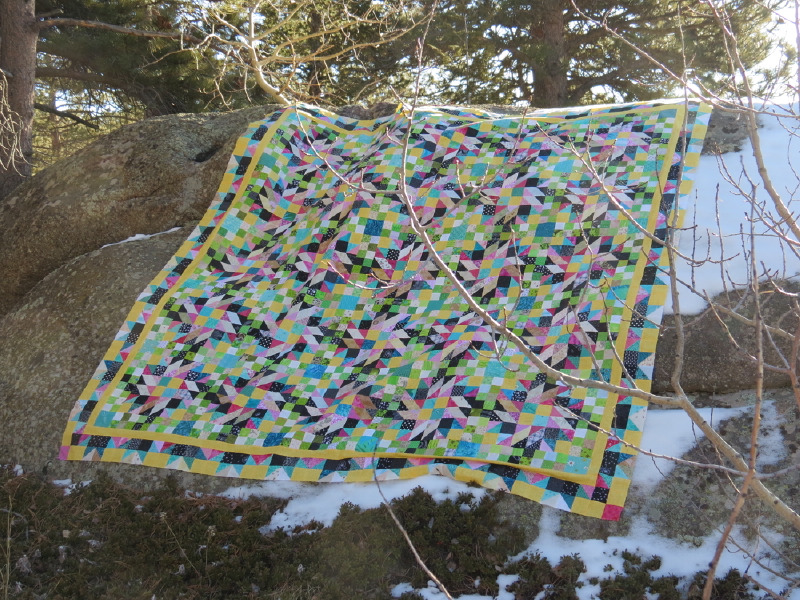 Finally, Bonnie Hunter's Grand Illusion quilt from this winter. This also still needs quilting: