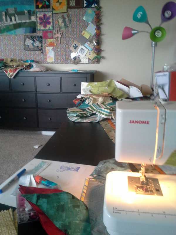 What I need to work on is an improv Christmas quilt that I've messed with in fits & starts, and am not certain if it will finish up or become something different. I began by trying to mesh traditional fabrics (given to me, and used for my Christmas tree skirt and then Christmas stockings for the family) with more contemporary fabrics that I like better, to try and make a couch throw for Christmas that would mesh my style with the style of the tree skirt. I think I pulled in too many fabrics though and am not certain it is going to work to become a complete quilt. No pictures of that mess just now, but if I get it out to work on I'll post photos....
