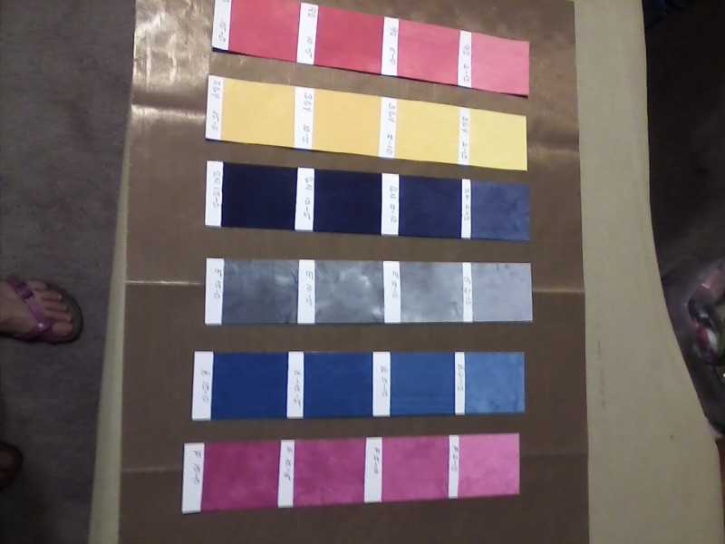 I weigh my dye powder and prefer Candy Glendenning's saturation level. If I use 10gr to 2 cups of water, I get lovely and lively results. You can always cut your stock by adding water to get less saturated colors. When I was in Elizabeth Barton's class I mixed it at 20 grams to 1 cup of water and I felt that I wasted a lot of dye. The washout took forever!!