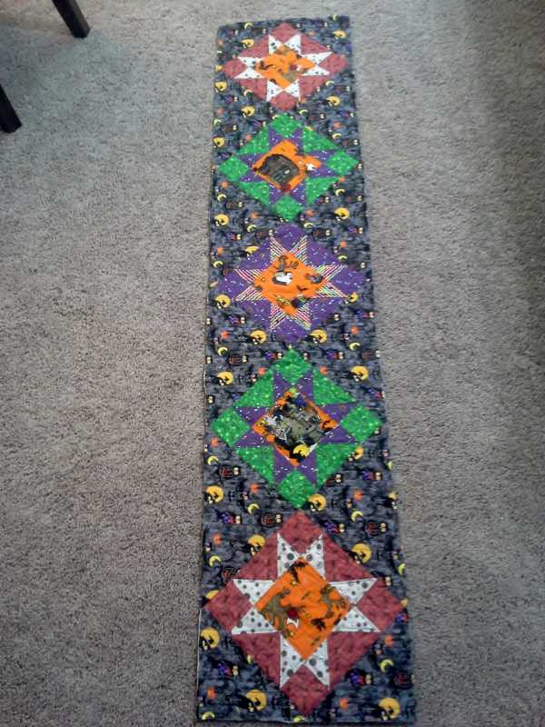 the demo from class were the things she showed in the last 10 to 15 mins, we were done, it wasn't 5 yet, so anyone who wanted to stay, she let us look at her quilts (she had brought several for show & tell) and ask her to demo whatever we wanted. So she demoed the puzzle pieces, and some daisies, and some other stuff. Gears....a sort of cathedral window thing...stuff like that. Spider webs...