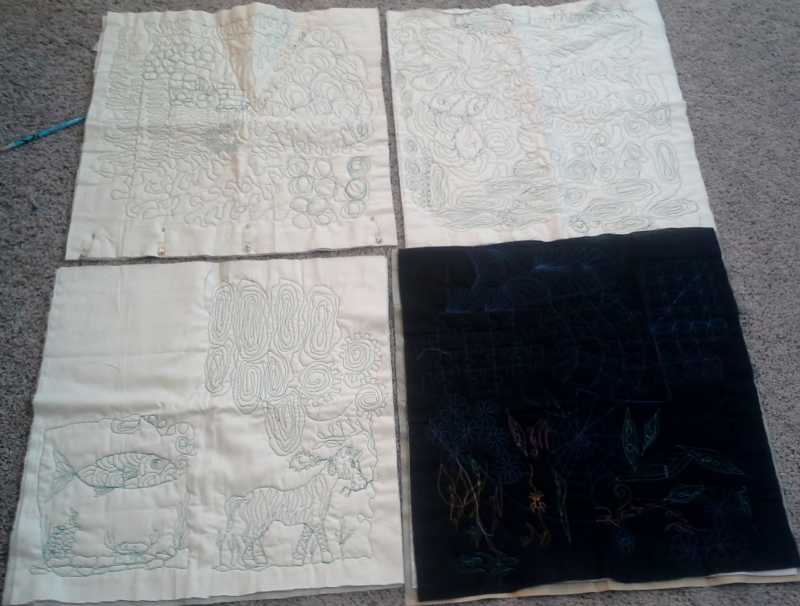 But it was very fun, and truly the highlight of the whole weekend for me. I could ramble a bunch on this (ha! like I haven't already!), as it was just amazing. I have tried FMQing a tiny bit on my own, but having the whole day to just really get the feel of how fast to have the needle, how slow or fast to have my hands moving the quilt, just to get the rhythm sorted out....that was fantastic and just what I needed. It was a class from 9 to 5, with a 2 hr break for lunch. I didn't worry too much about getting it "right", just about getting the feel of the rhythm.