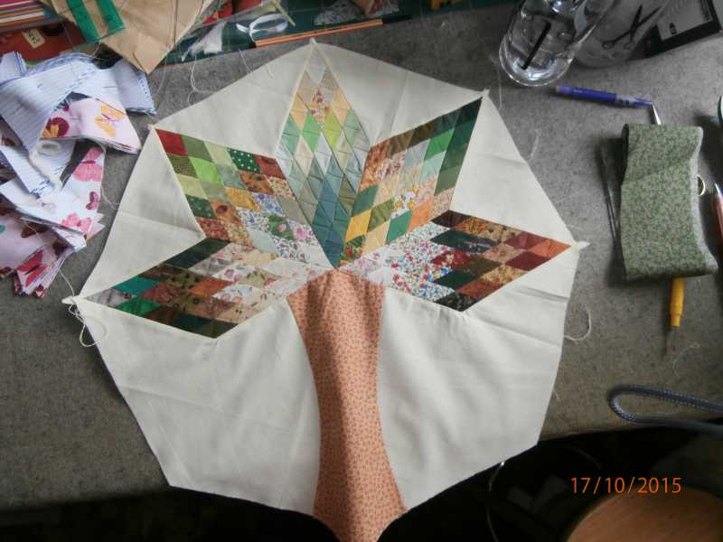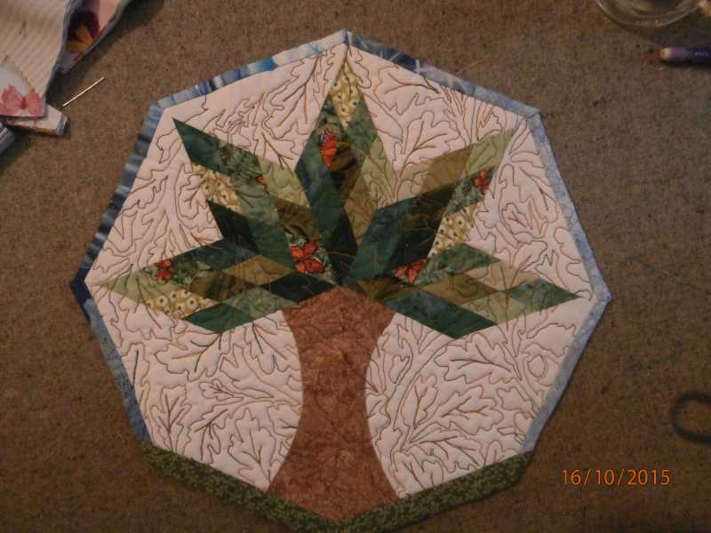 I was experimenting a couple of years ago and pieced this tree, then I quilted it with an all over design that is taken from a William Morris oakleaves design - lots of starts and stops