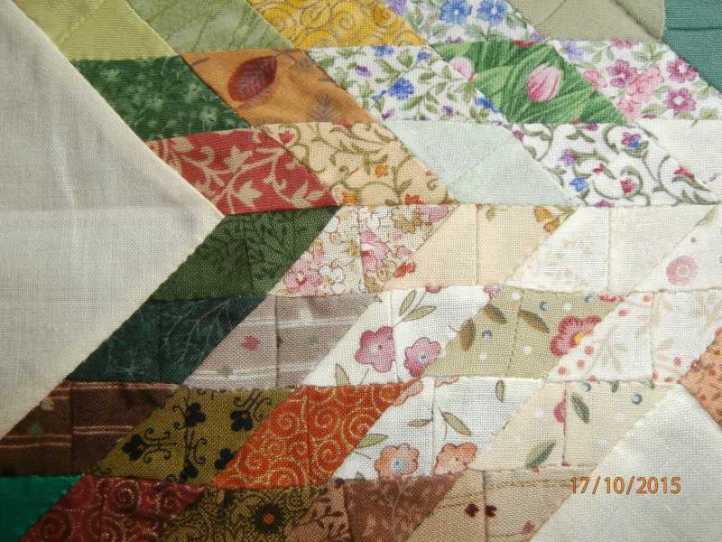 , but I think it looks worth it. Then I put it by. Rediscovered it this week and combined with some of the contents of a scraps care parcel from Lorchan I finally put a binding on it. It measures 12 1/4" across from point to point, so that makes it too large for the FoQ miniatures section, but who cares, it makes me happy.