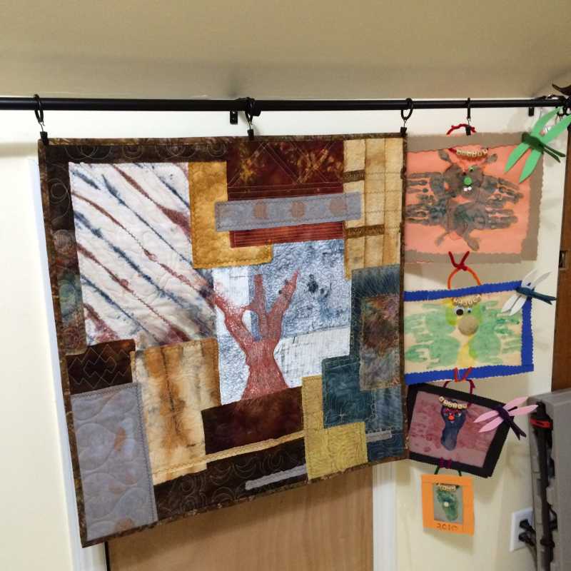 I don't know if I did show these or not, so here they are with the ribbons. I may have posted them when I first did them......not sure. The red/blue/yellow is my favorite and hangs at the top of my stairs; the other one is a table topper for the game room though tends to be thrown on the floor as apparently board games don't sit well on top of it....I will probably end up hanging it on the wall somewhere instead.