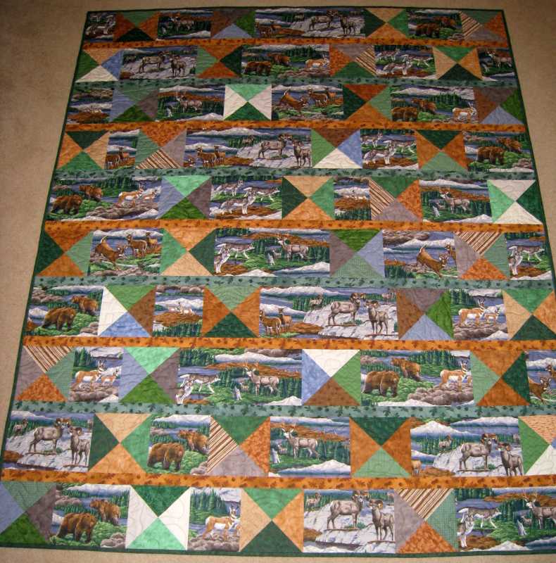 I finally finished my DBIL's quilt except for the label, which will get done tomorrow if he's going to get it for his b-day. It's not king size like he wanted but if he turns it sideways it would almost work for a king size bed. Next year he will get the king size one in a design that his wife chose.