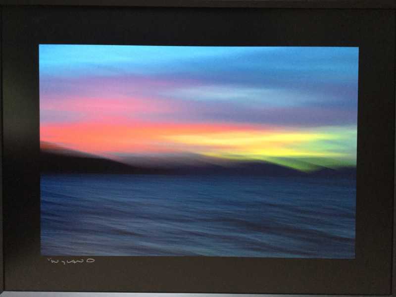 Green flash. This photo hangs in my sewing area. Was taken by Wyland (He's a marine life painter). He took the picture of this phenomenon that occurs in the Pacific Ocean at sunset.