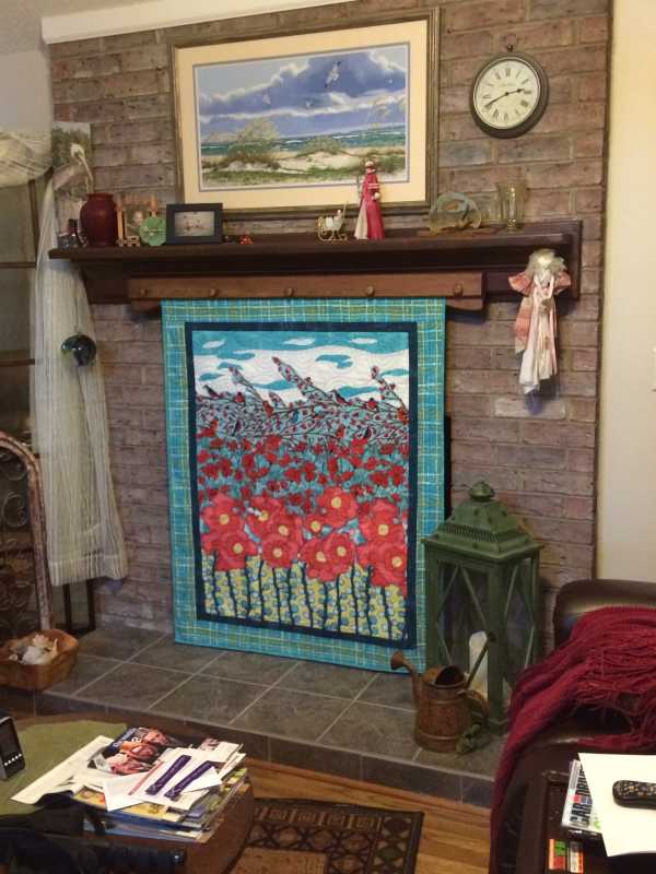 my Poppyfields quilt, cuz I'm just presently crushing on aqua and red!