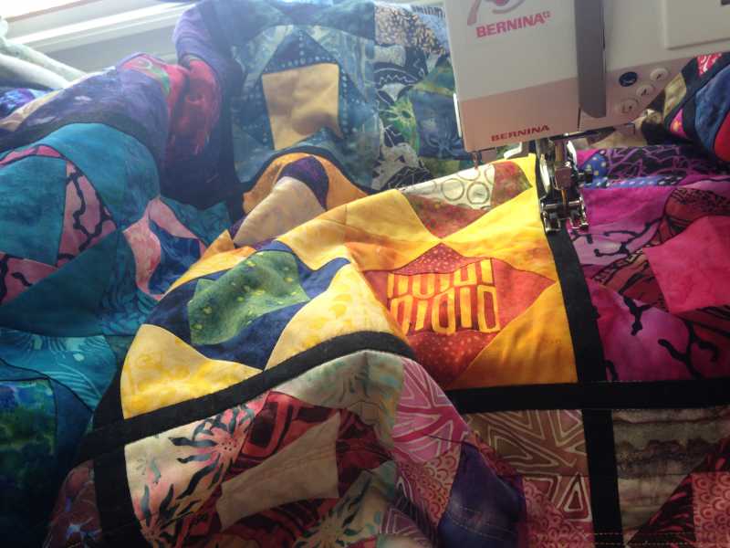 This little adventure was just what I needed to break up the quilting of the big quilt. I think I've shown this many times but here is what I've been quilting. I'm calling it "Color and Passion".