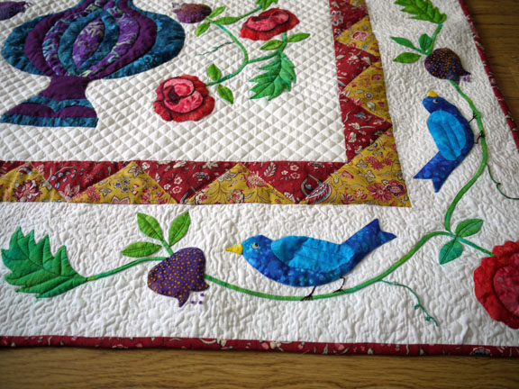Wow!!! It was beautiful before the quilting and now it is fabulous. Hope that is spelled right, but if not you all know what I mean. Will this be in some shows now? I would love to see it in person.