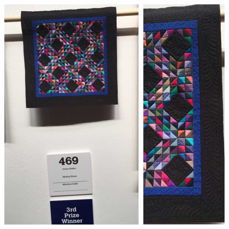 Rosemary, absolutely love your miniature quilt. It is so well designed that seeing the photo doesn't give away the size. Of course knowing how petite it is makes it even more special. The texture and colors are fabulous. So happy that you have the recognition you deserve. Congratulations!!!