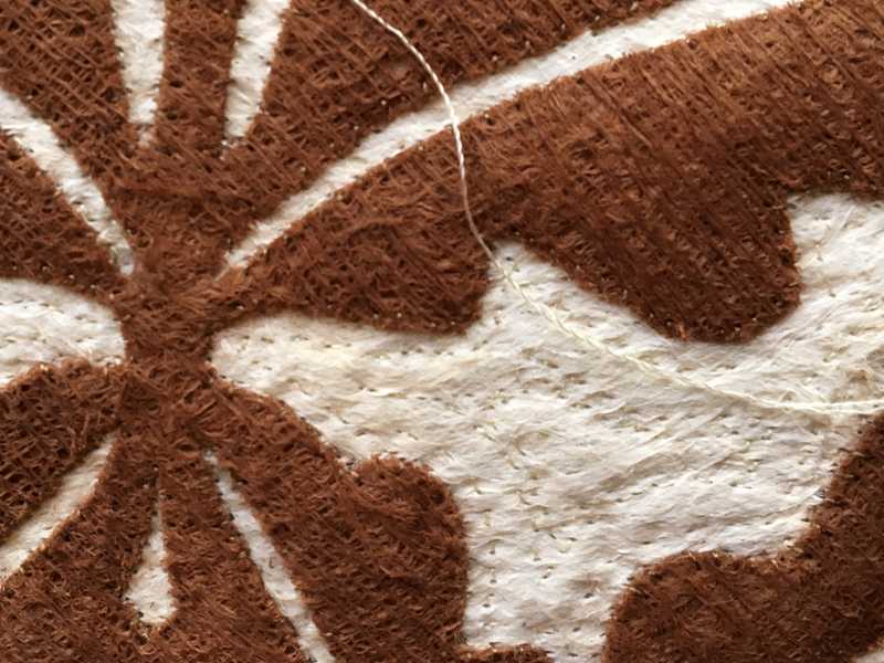 Marilyn, both the fabrics are tapa cloth - bark cloth. The white is from Hawaii and I think the brown is from Africa. The real advantage of using it is that it doesn't fray and didn't need turning under