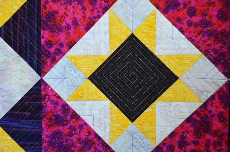 I entered this quilt into our local guild show which is next week. It's called "Mardi Gras". The colors reminded me of the party atmosphere of Mardi Gras. I quilted it on my new Bernina 770 and it was fun. I used several different color threads. I think it turned out nice.