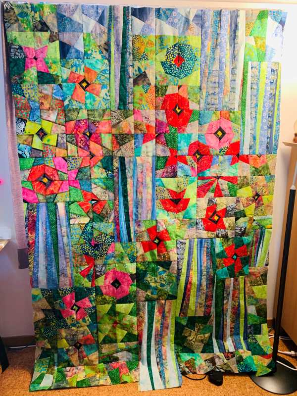 masks for her family so I stitched those. I haven't made nearly as many as Geneva! I think our new normal will include wearing masks and social distancing at least until a vaccine becomes available. Zoom conferencing has kept me in touch with some of my quilting and work friends. My husband couldn't stand his hair length so I buzzed it off with the dog clippers. In my lifetime, I've clipped horses, cattle and dogs; but he was my first human head to buzz! The first time, I trimmed, it wasn't short enough for either of us. I liked the second trim length; but, it wasn't short enough for him. The third time was the magic one because there was hardly any hair left; but, he was happy! I do miss seeing his curls--he has cut them off for the last several decades! While I would buzz his head again, I hope his barber will be open when he is ready for his next hair cut!