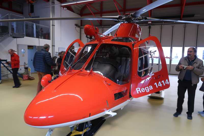 Took the day off today and spent the morning sewing and the afternoon on an excursion with the local women’s club. We visited the nearest REGA air rescue base. The REGA was set up in the fifties, was apparently the first privately run helicopter rescue service. In the sixties they had serious funding problems and asked the Swiss population for help. They are still donor funded and today have 11 médical rescue helicopters and three medical jets (practically three intensive care units in the sky), that bring back and transfer seriously ill patients from all over the world. Was very interesting and as our tour was given by a retired paramedic/mountain rescue specialist who worked and led rescue missions for thirty years 1977-2007. We really got a lot of stories from live experience and a great insight into the development of this work. As the company I work for makes resuscitation, reanimation and emergency monitoring devices it was especially interesting for me.