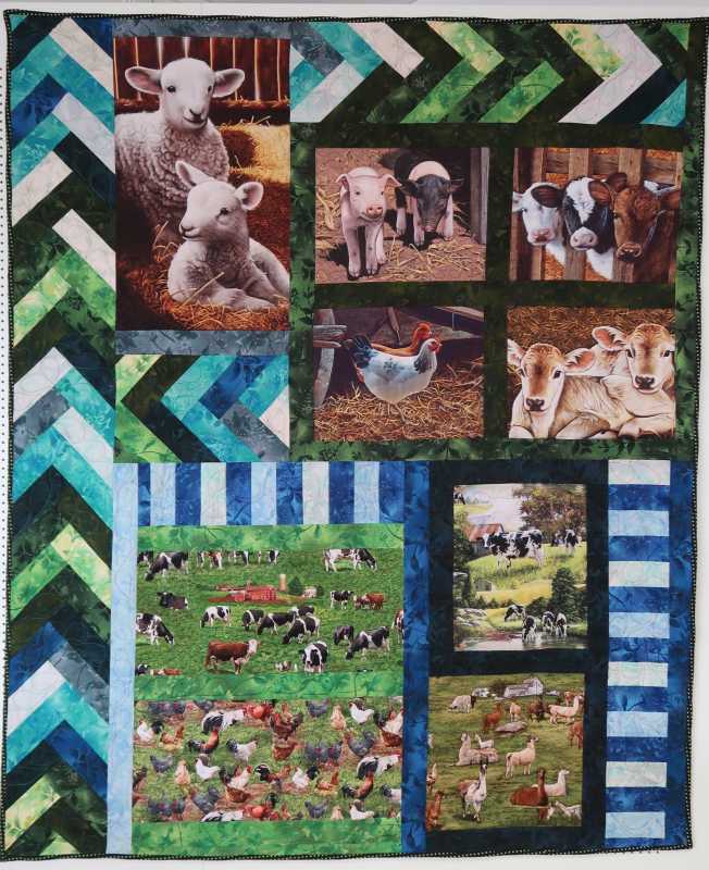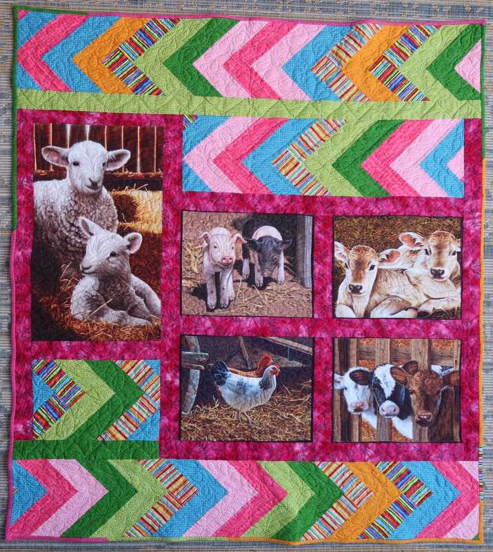 and my cousin's sons moved to Colombia a while ago and the elder had a baby son last spring. as his brother is now here for a visit he is taking a quilt for his young nephew, Valentin, back with him. I thought farm animals and farm scenes would also be fun for him.