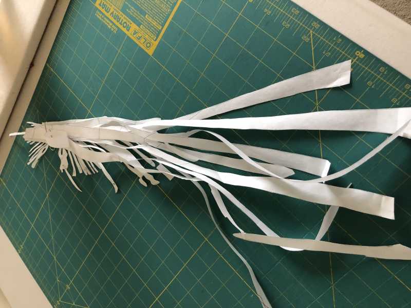 And here are all the little freezer paper cut pieces that I carefully placed onto the background I had chosen.