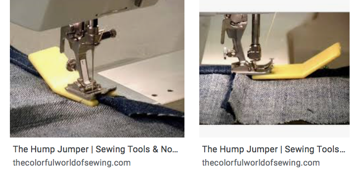 jeans to get over the thick side seams. You have to stop and build up the back side of the presser foot so the machine thinks it is the