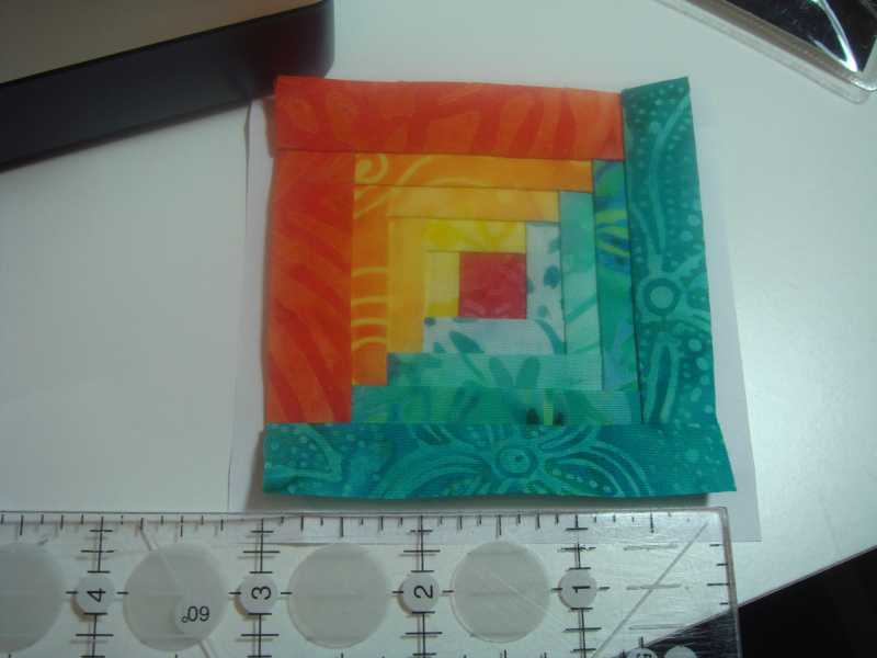 I decided to use paper-piecing for this block, as the "logs" are only a 1/4" finished. I used "add-an-eight" instead of the "add-a-quarter" ruler - so there would be less in the seam allowance.