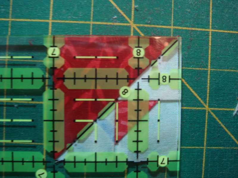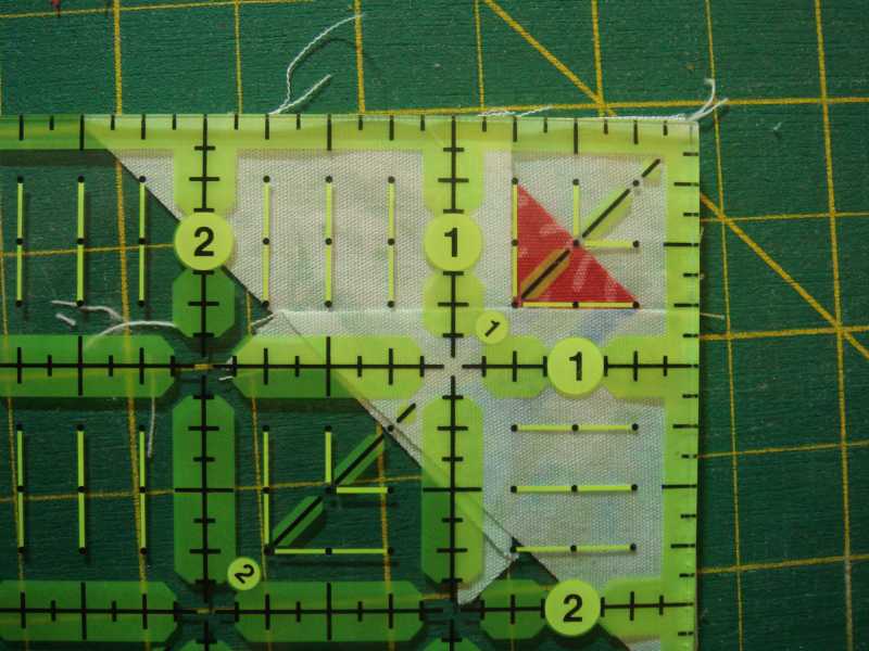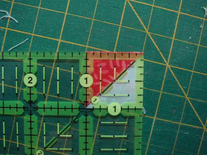 Step 3 - Lay ruler on the triangle unit and align the short sides of red triangle with the 3/4" marks.