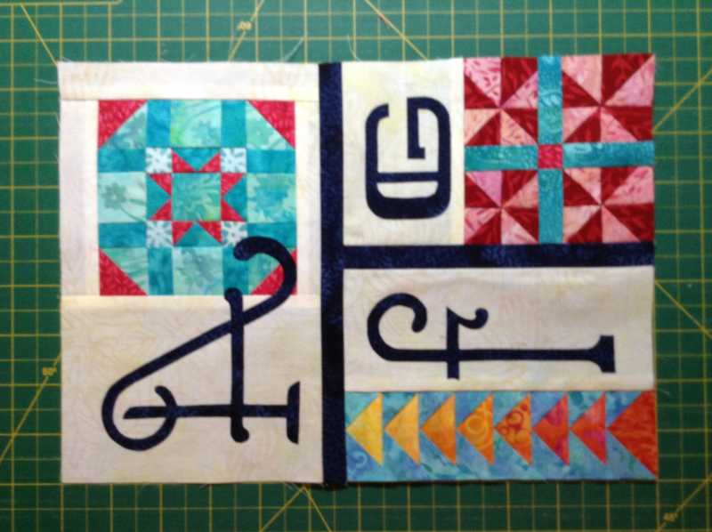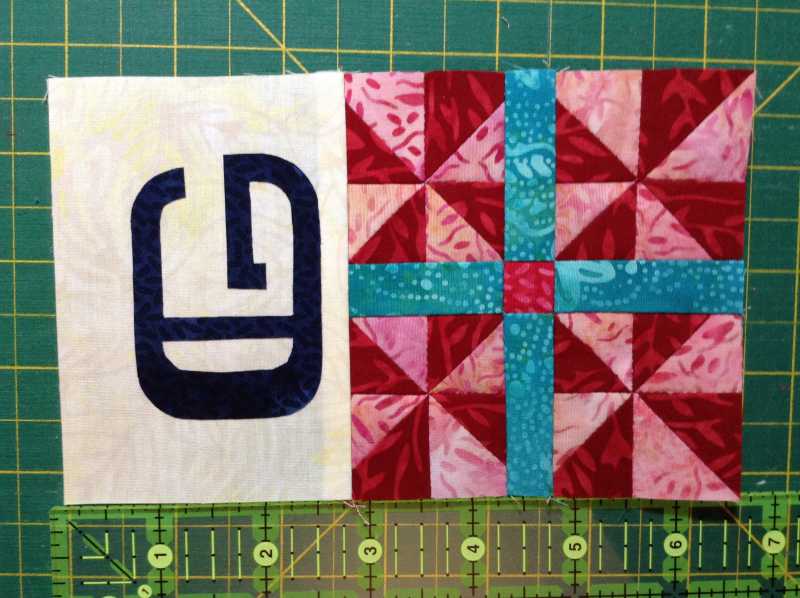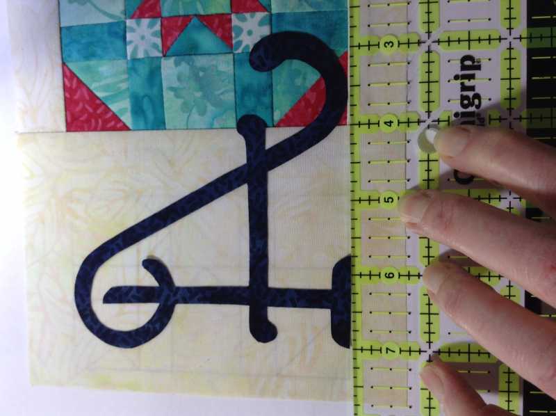 Step 5, the margin at the bottom of the letter will be 1/2" from the raw edge. Once the background is attached to the block, the bottom of the "G" will be at 1/4" from the seam.