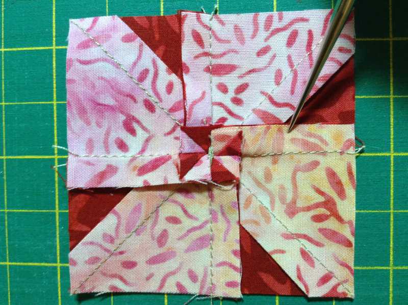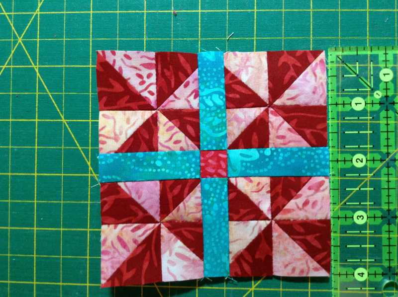 Step 4, join the rows, the block will measure 4" x 4" from raw edge to raw edge.